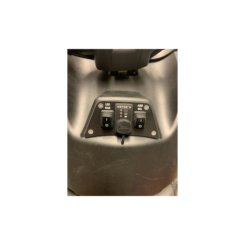 Special brytarpanel med uttag för Ctek i tålig plast, 2st IP65 brytare samt 4st rostfria skruv för Can-am Outlander.
