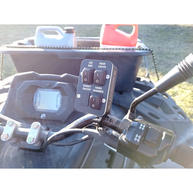 Universal kit med brytarpanel i tålig plast, 2, 3 eller 4st IP65 brytare samt rostfria skruv och fäste i aluminium.