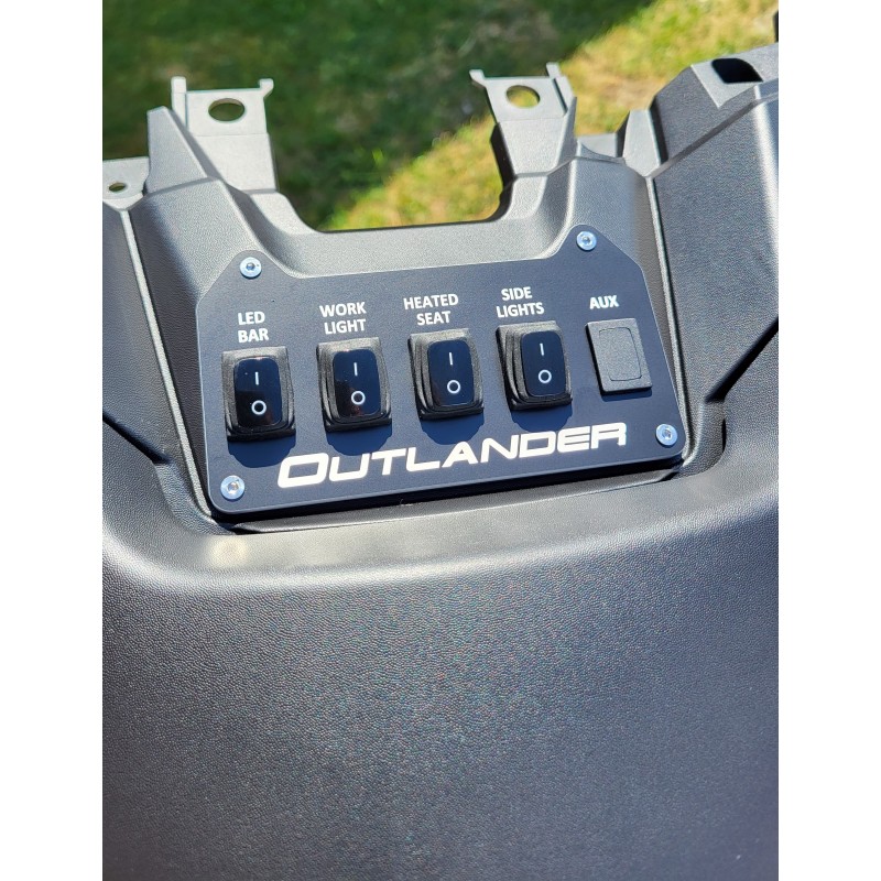 Komplett kit med brytarpanel i tålig plast, upp till 5st IP65 brytare samt 4st rostfria skruv för Can-am Outlander 2024